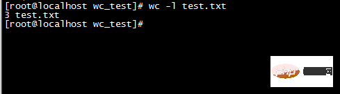 2)执行命令wc -l test.txt后,结果如下图所示: