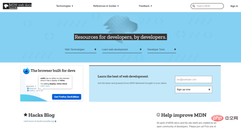 MDN Web Docs 站点提供有关开放的 Web 技术的信息,包括用于 Web 站点和渐进式 Web 应用的 HTML、CSS 和 API 等技术。