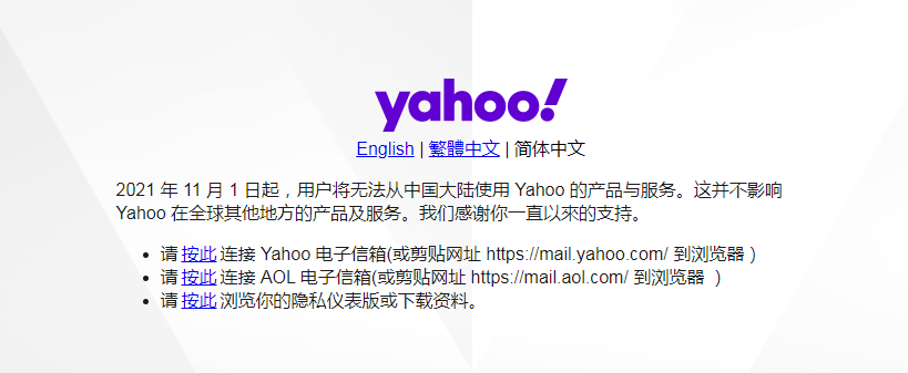 以上就是开放猎豹最近收集整理的关于最新消息!雅虎Yahoo正式退出中国了!的全部内容,更多相关最新消息内容请搜索靠谱客的其他文章。