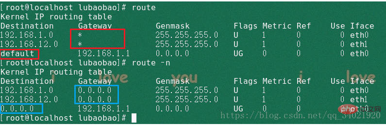 显示当前路由,从图中可以看出加了选项-n的变化