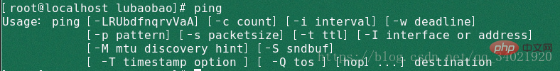目的地址指的是被测计算机的IP 地址、主机名或者是域名。ping 命令包含12 个参数,所有参数都可以通过执行ping来查看。如下图:
