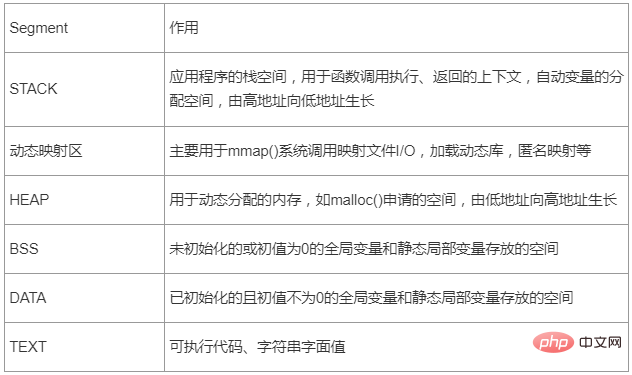 如果系统没有开启地址随机化(ASLR - Address Space Layout Randomization,地址随机化,后文会介绍),则Linux会将上面表格中的各个segment的地址空间放到一个固定的地址上面。