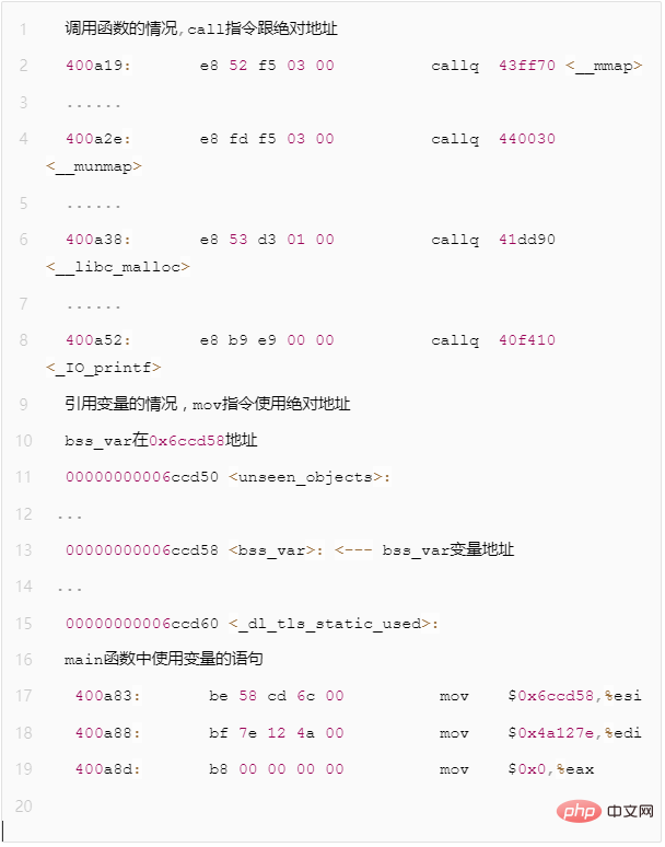 通过objdump命令反汇编后可以看到,对于全局变量和函数调用的访问,汇编指令跟的地址都是固定的,这样的代码我们就称它为位置相关的。