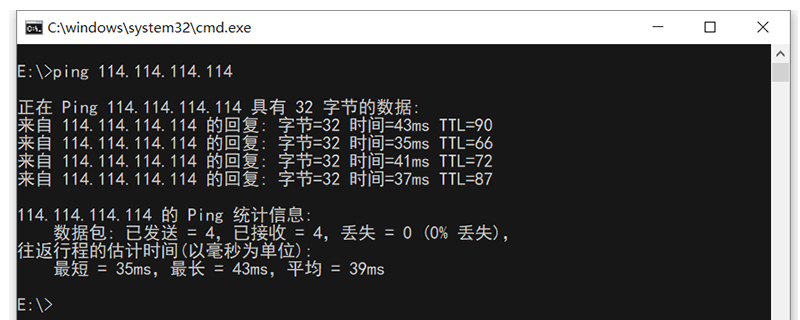 输入ping命令ping自己的服务器(也可以ping DNS服务器,检查自己的网络,如下图)