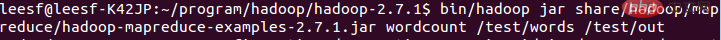 bin/hadoop jar share/hadoop/mapreduce/hadoop-mapreduce-examples-2.7.1.jar wordcount /test/words /test/out