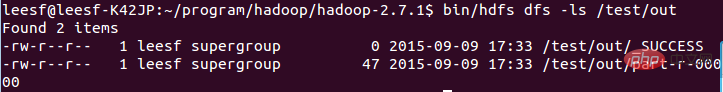 bin/hdfs dfs -ls /test/out,结果截图如下: