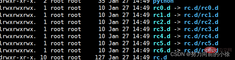 所有的文件都是软链接(快捷方式),链接的地址为/etc/init.