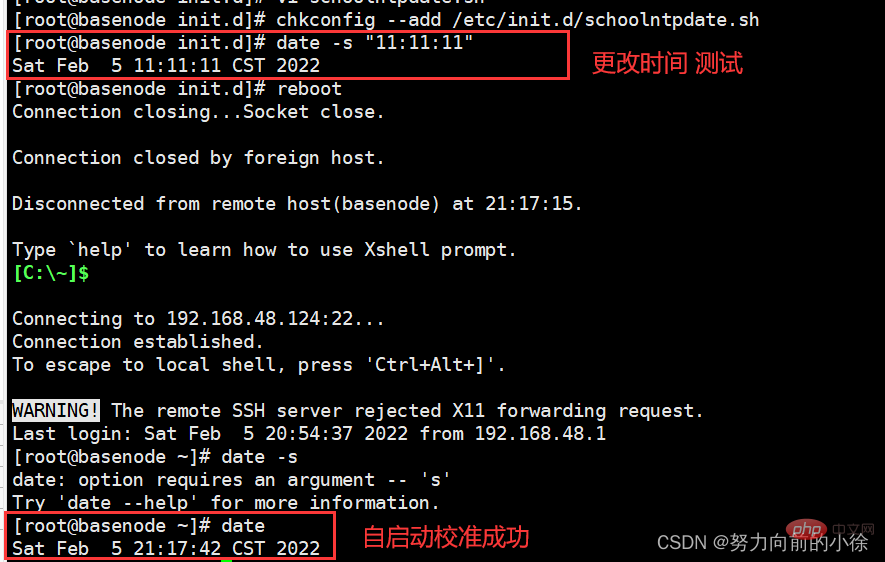 登录后复制#!/bin/bash #chkconfig:2345 88 99 #description:schoolntpdate.sh ## 开机自启动同步时间 yum info ntp && ntpdate cn.ntp.org.cn