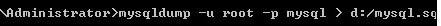 即:mysql导出数据库命令只能在系统命令行下使用,而不能在mysql命令行下使用。