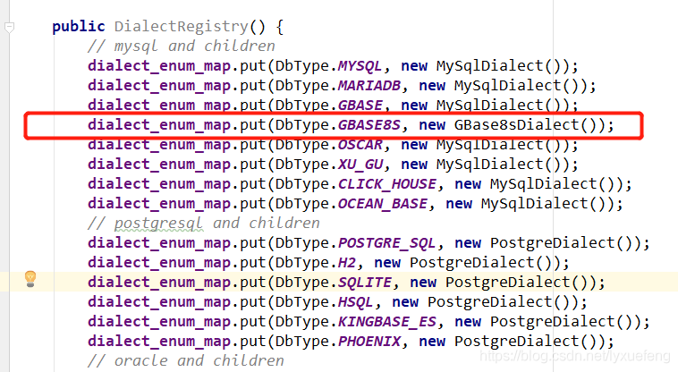 dialect_enum_map.put(DbType.GBASE8S, new GBase8sDialect());