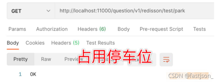 而后用 postman 发送 park 请求占用一个停车位。