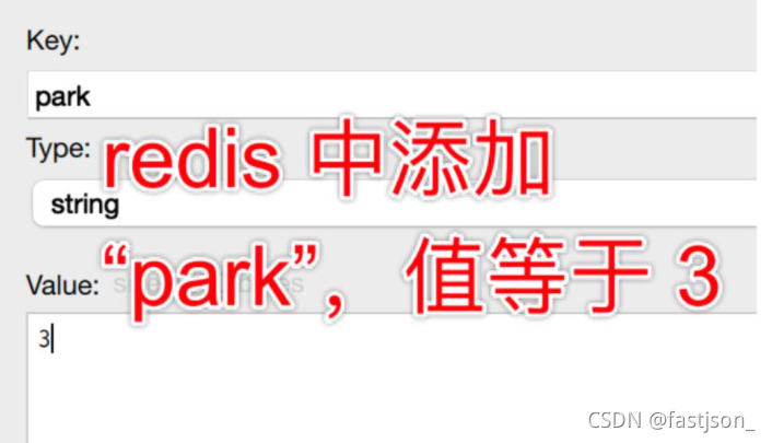 为了简便,我用 Redis 客户端添加了一个 key:“park”,值等于 3,表明信号量为 park,总共有三个值。