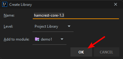 鼠标移动到依赖包上,右键选择 Add as Library...。依次添加 junit.jar 以及 hamcrest-core.jar 到 library 中
