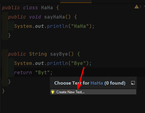 Ctrl + Shift + T 快速创建 Test 代码。选择 Create New Test... 并选择你需要测试的方法。