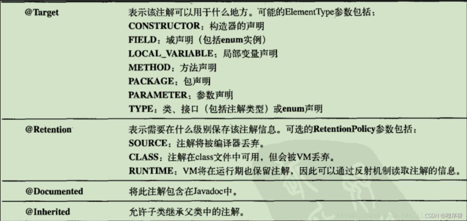 如果在定义Annotation类型时将@Retention设置为RetentionPolicy.RUNTIME,那么在运行程序时通过反射就可以获取到相关的Annotation信息,如获取构造方法、字段和方法的Annotation信息。