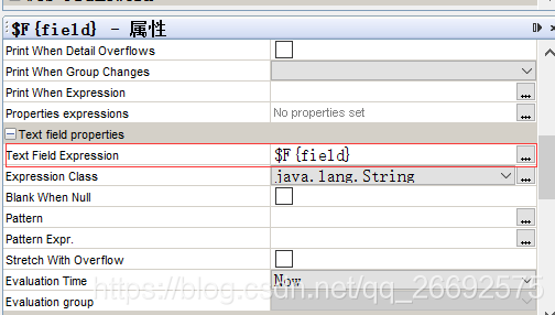 下面给每个Text Field动态的设置值,选中用户id下面的Text Field,右边属性栏,找到下图的属性,点击三个小点打开,