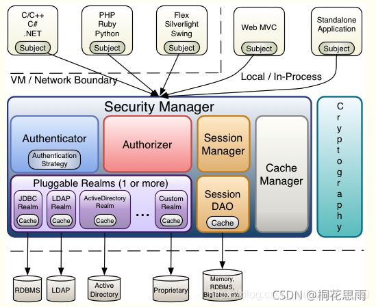 Shiro 的架构有三个主要概念:Subject,SecurityManager 和 Realms
