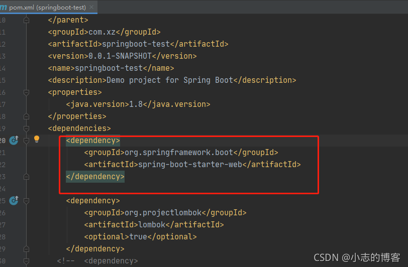 1、springboot项目中pom.xml文件中首先引入web的Starter,如下所示: