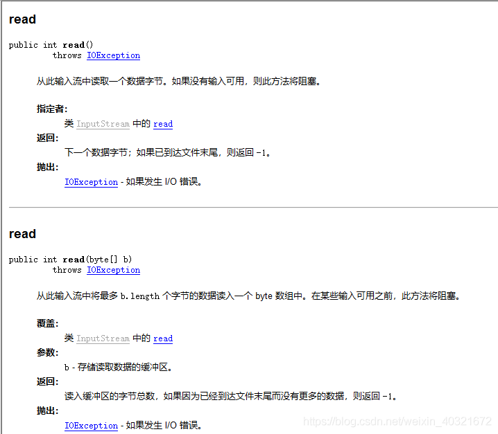 讲文件流的时候,我们会看到这两个read方法,看一下API