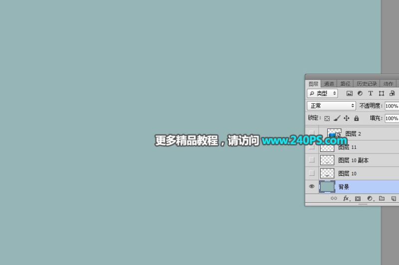 2、把前景色设置为青灰色#96b5b7,然后用油漆桶工具把背景填充前景色。