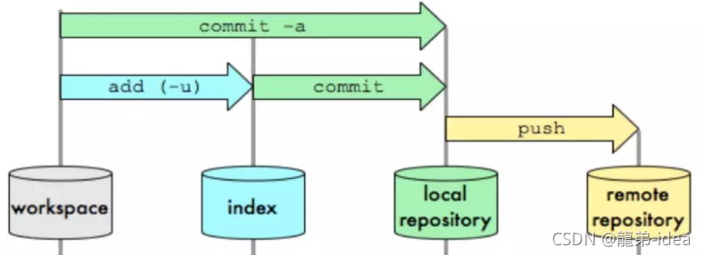 - WorkSpace:需要通过Git进行版本控制的目录和文件,这些目录和文件组成了工作空间。