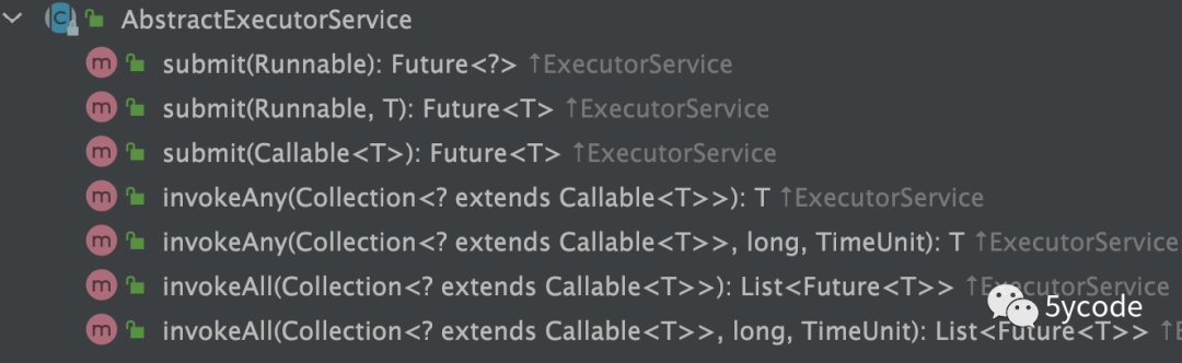 abstract class AbstractExecutorService implements ExecutorService{ //此处把ExecutorService中的提交方法都实现了