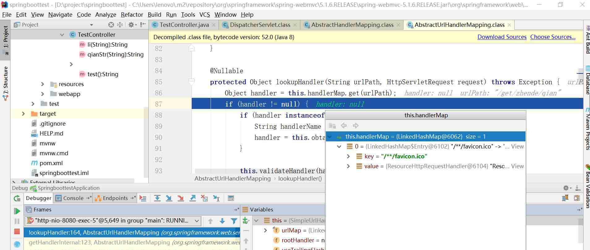遗留问题,当项目中有多个路径可以匹配会怎么执行?为什么一开始的DispatcherServlet 中会有5中类型的handlerMappings?