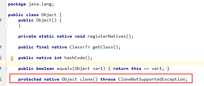 (1) 如果不重写,由于Object.clone()是proteced属性,所以这个clone()方法将无法在外部被调用,更精确地说,无法在目标类之外的任何地方调用。这样就使得克隆失去了用武之地。
