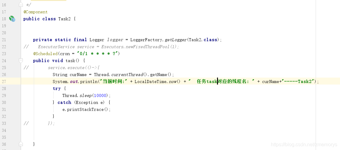 无论@scheduled是用在一个类的多个方法还是用在多个类中的方法 默认都是单线程的。
