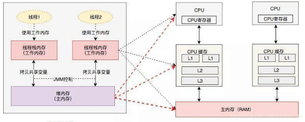 程之间的共享变量存储在主内存(Main Memory)中,每个线程都有一个私有的工作内存(Local Memory),工作内存中存储了该线程以读/写共享变量的副本。