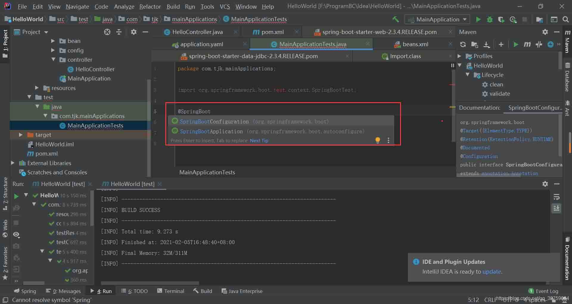 打注解@SpringBootTest的时候不会出现提示
