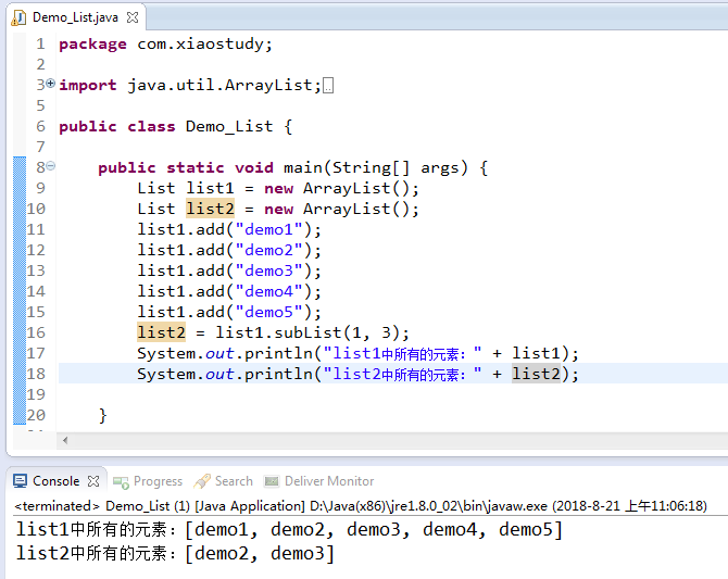 9、List<E> subList(int fromIndex, int toIndex)