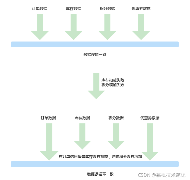 (3)一个事务包含了多个微服务调用数据不一致引发的问题