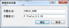 在环境变量中新建TOMCAT_HOME,值为Tomcat所在的目录,也就是F:\TomCat_8.0.24
