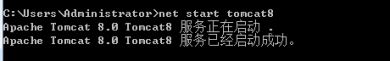 了解了Tomcat的多种打开方式,我们就可以来验证Tomcat是否能工作了,选择Tomcat启动的任意一种方式,如在cmd中键入netstartTomcat8