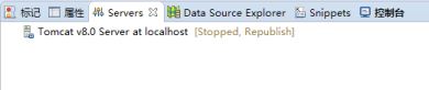 Eclipse自动地帮我们选择了【Tomcatv8.0Server】选项,由于我们现在还没有资源,所以直接点击【完成】,可以看到这时的【Servers】标签:
