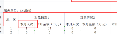 【3】对于空的单元格,直接在数组或者列表中给个空值就可以了。对于下面的图片中第5行的[本月人次]这种如果是数组直接在创建列的时候指定起始位置为1就可以了,注意不要影响合并的位置,而且合并的单元格不要有冲突否则会抛出异常,注意些就可以了.