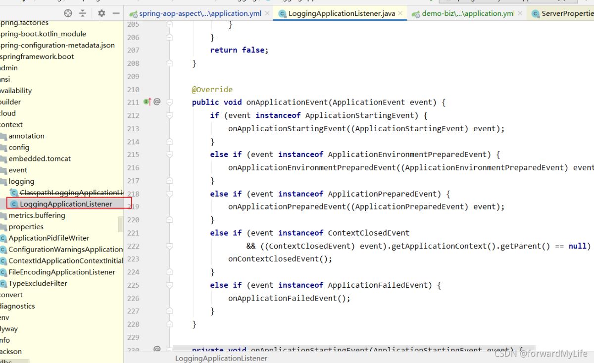 有个loggingApplicationListener的监听器,监听了spring的事件,读取了spring容器中的日志配置,进行了日志的初始化。