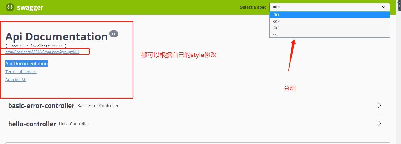 return new Docket(DocumentationType.SWAGGER_2).groupName("KK1");