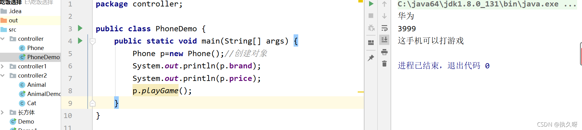 类名 对象名=new 类名();举例 Phone p=new Phone();