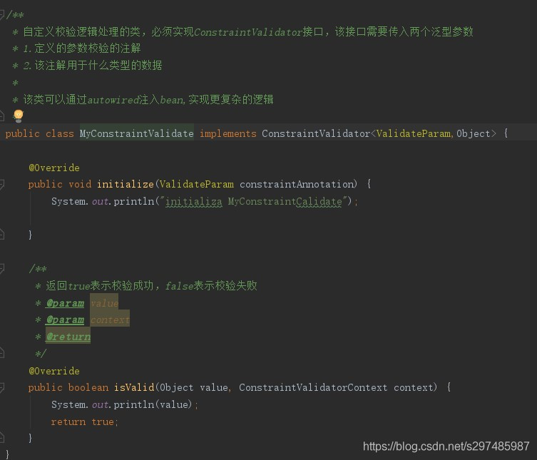 public boolean isValid(String value, ConstraintValidatorContext context) { // 实现校验规则