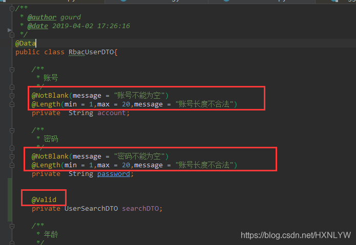 @NotBlank(message = "用户名不能为空")