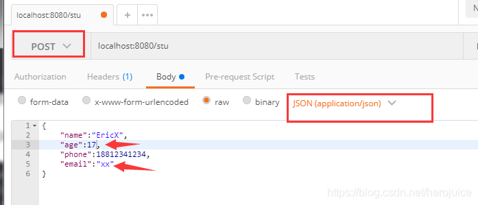 如果我们想要Spring把POST数据认为是json并且使用MappingJackson2HttpMessageConverter来解析数据,可以把Content-Type设置成 application/json
