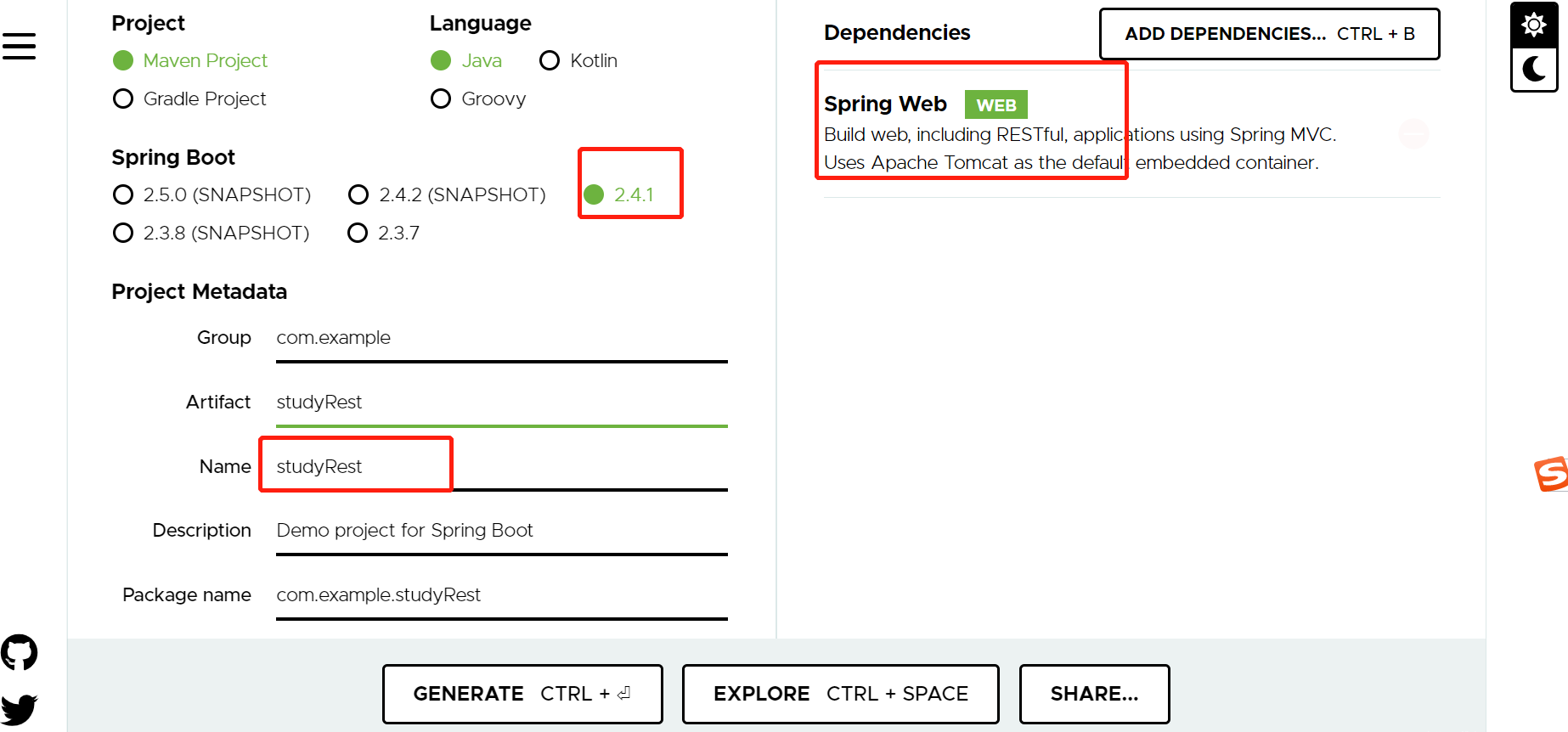 通过spring官网创建项目