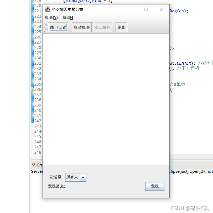 * client.input.redObject()获取客户端发送到服务端的消息,通sendToAll(),将发送到发送到所有人的信息发送到各个客户端
