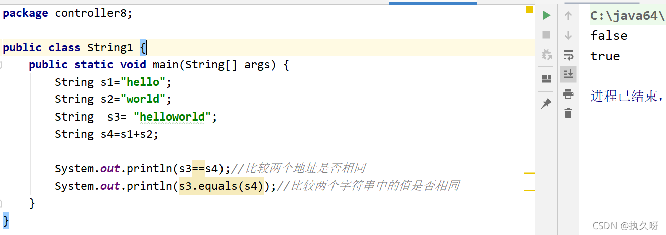 System.out.println(s3.equals(s4));//比较两个字符串中的值是否相同