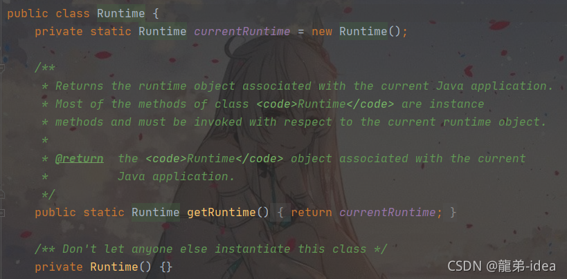 在我们JDK中,java.lang.Runtime就是经典的单例模式(饿汉式)