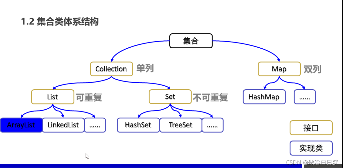 1.概述:首先Collection是属于单列集合的顶层接口,表示为一组对象。其类型为引用数据类型,具体创建对象,通过多态的形式进行。
