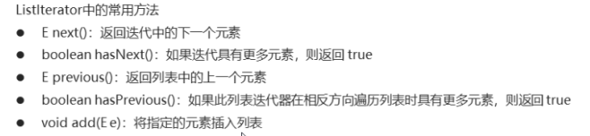 用法:可以按照任意方向进行遍历,并在迭代期间修改列表,并获取列表中迭代器的位置,是list集合特有的迭代器。