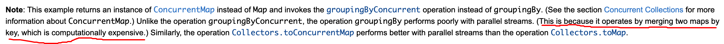原因,并行流执行时,通过操作Key来合并多个map的操作比较昂贵。详细大家可以查看官网介绍。